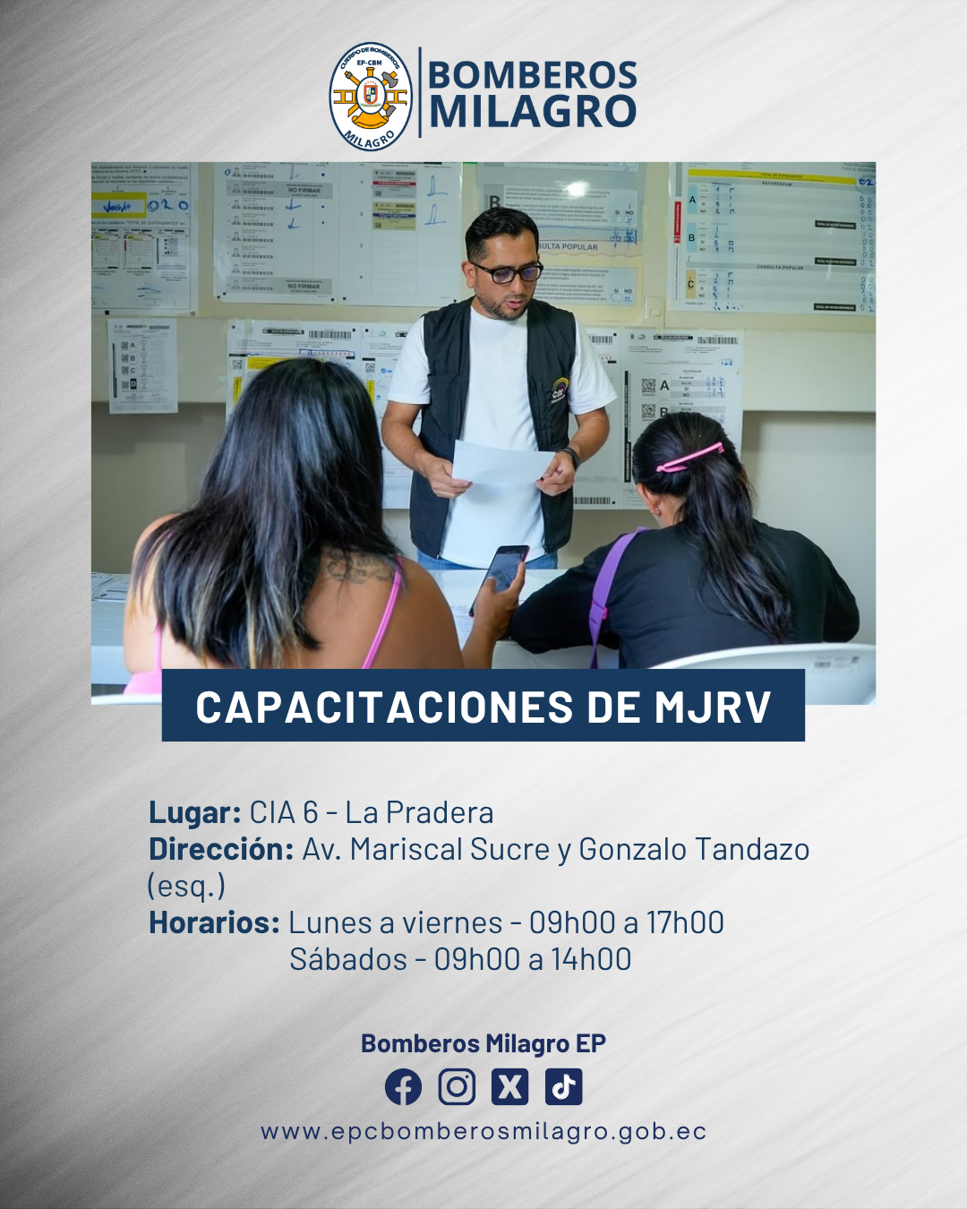 Posted inIncendios Noticias INCENDIO ESTRUCTURAL CONTROLADO EN EL SECTOR LOS PINOS Milagro | Tras la alerta recibida a través el ECU911, de un incendio estructural en… 7 noviembre, 2025 Posted inCapacitaciones Noticias CULMINACIÓN DE CURSO DE ATENCIÓN PREHOSPITALARIA NIVEL INTERMEDIO Durante tres días, el personal operativo del Cuerpo de Bomberos de Milagro participó en el… 5 noviembre, 2025 Posted inNoticias BOMBEROS MILAGRO Y HOSPITAL DEL IESS FORTALECEN LA COOPERACIÓN INTERINSTITUCIONAL El TCrnl. (B) Ing. Juan Pablo Raffo, Primer Jefe del Cuerpo de Bomberos de Milagro,… 5 noviembre, 2025 Posted inNoticias Rescates CULMINA CON ÉXITO EL OPERATIVO DE BÚSQUEDA EN EL BALNEARIO LAS CATARATAS El Cuerpo de Bomberos de Milagro, a través de su División de Rescate y División… 5 noviembre, 2025 Posted inNoticias Rescates LABORES DE BÚSQUEDA EN EL BALNEARIO LAS CATARATAS La División Fluvial del Cuerpo de Bomberos de Milagro desplegó un operativo de búsqueda durante… 5 noviembre, 2025