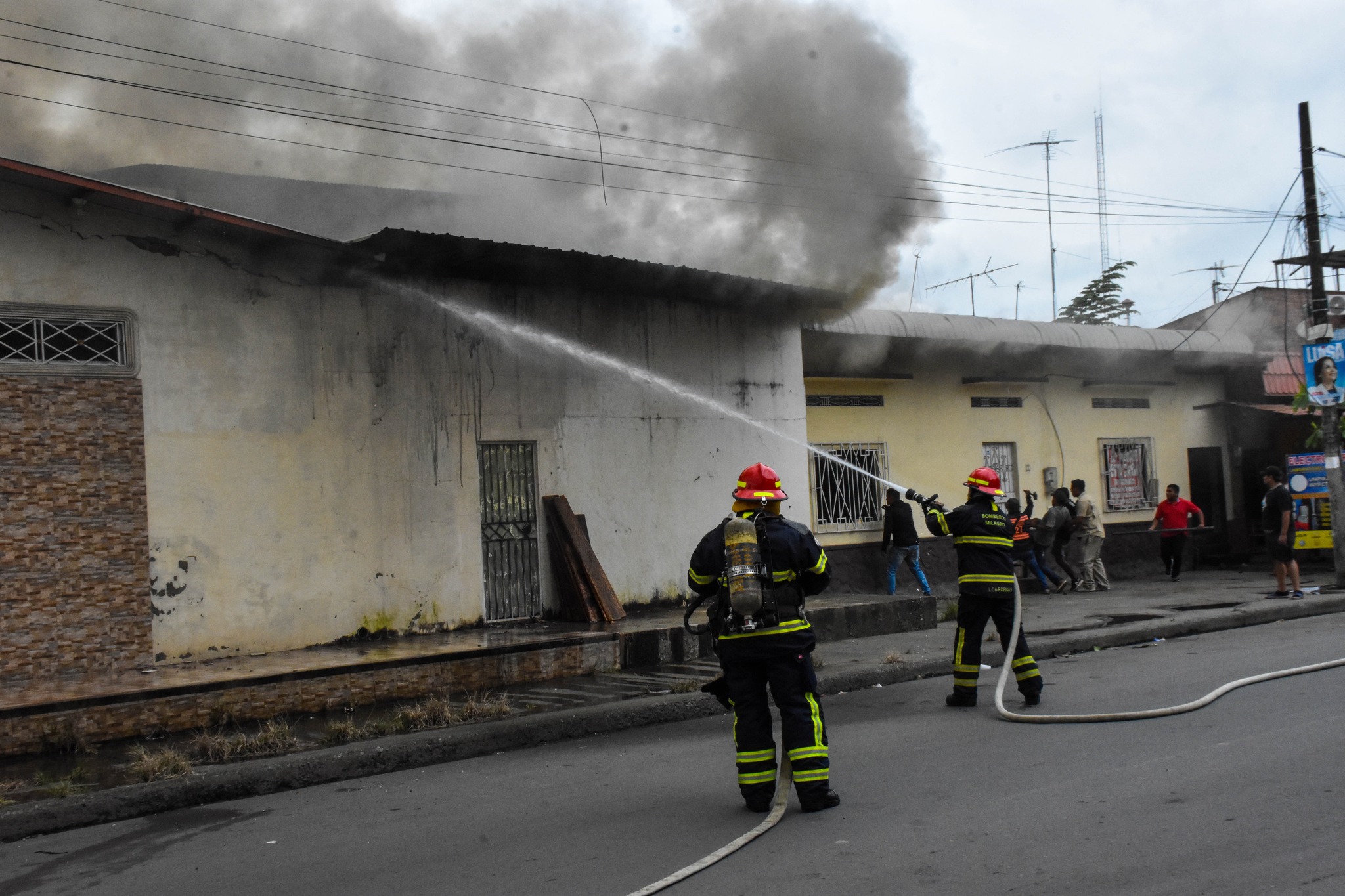 #Milagro | La mañana de este jueves 24 de abril, atendimos un incendio estructural de gran magnitud en un local comercial de venta de repuestos de vehículos, ubicado en las calles Calderón y Pedro Carbo, centro de la ciudad. El siniestro comenzó alrededor de las 10h30, propagándose rápidamente por las instalaciones del establecimiento. Inmediatamente se desplegaron varias unidades contra incendios, tanqueros y personal especializado para contener las llamas, evitando su propagación y garantizando la seguridad en los alrededores. Ante la magnitud del incendio, declarado como Alarma 2, se solicitó apoyo inmediato a los cuerpos de bomberos de Marcelino Maridueña, Simón Bolívar y Yaguachi, a fin de reforzar las labores de control y evitar la propagación a estructuras aledañas. En la emergencia colaboraron 50 bomberos (entre operativos y voluntarios), siete motobombas, dos ambulancias, dos unidades de rescate, Policía Nacional, ACT y Ambulancia del MSP, que, gracias al trabajo conjunto y coordinado entre las diferentes unidades, se logró confinar el fuego y proteger otras propiedades del sector. Afortunadamente, no se reportaron víctimas ni personas heridas. Bomberos Milagro reitera su compromiso con la protección de la vida, el entorno y los bienes de la ciudadanía, y recuerda la importancia de mantener las instalaciones eléctricas y sistemas de seguridad en óptimas condiciones para prevenir emergencias. Navegación de entradas BOMBEROS REUBICARON ÁRBOL CAIDO SOBRE UNA CASA COLABORACIÓN INSTITUCIONAL PARA RESCATE DE VÍCTIMA EN EL CANTÓN EL TRIUNFO
