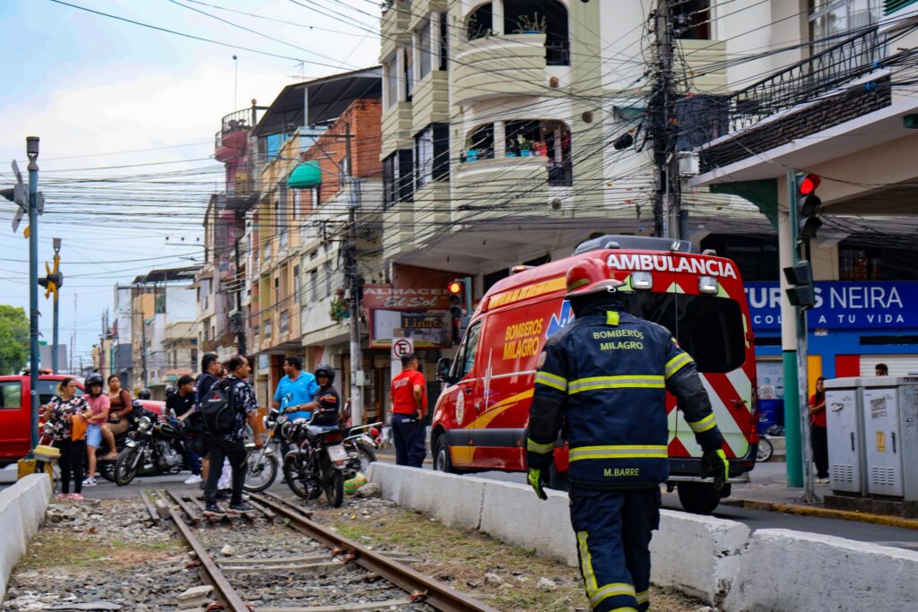 La tarde de este miércoles, el personal del Cuerpo de Bomberos de Milagro atendió una emergencia en la zona céntrica de la ciudad, donde un ciudadano sufrió una descarga eléctrica y posteriormente cayó desde el tercer piso de un edificio mientras realizaba trabajos de adecuación.