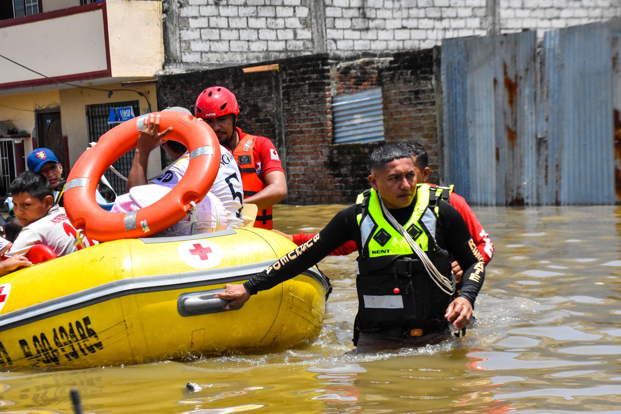 #Milagro | Realizamo evacuación de personas damnificadas por las fuertes inundaciones que afectan al cantón. Hemos logrado evacuar más de 800 personas de las zonas más críticas, trasladándolas a albergues temporales habilitados. Destacamos la colaboración activa de diversas instituciones como ACT, Cruz Roja que contribuyeron en las evacuaciones, además a los Cuerpo de Bomberos de Naranjito y Simón Bolívar que en horas de la noche arribaron a colaborar con botes y continuar con el rescate de personas. Se exhorta a la ciudadanía a seguir las recomendaciones de seguridad emitidas por las autoridades. En especial, se pide a los residentes de las zonas afectadas que permanezcan en las áreas seguras y colaboren con los equipos de rescate brindando información sobre personas que aún pudieran estar atrapadas. Navegación de entradas EVALUAMOS VIVIENDAS DEL RECINTO BARCELONA LUEGO DE VENDAVAL BOMBEROS DE CIRCUITO 1 AYUDARON CON EVACUACIÓN DE DAMNIFICADOS EN MILAGRO