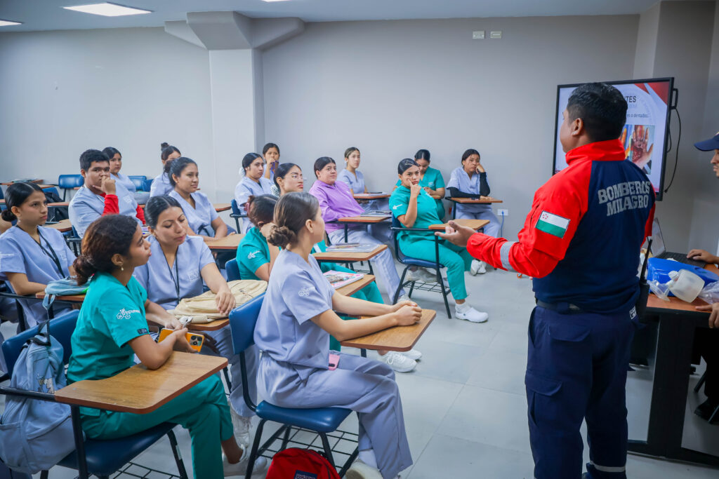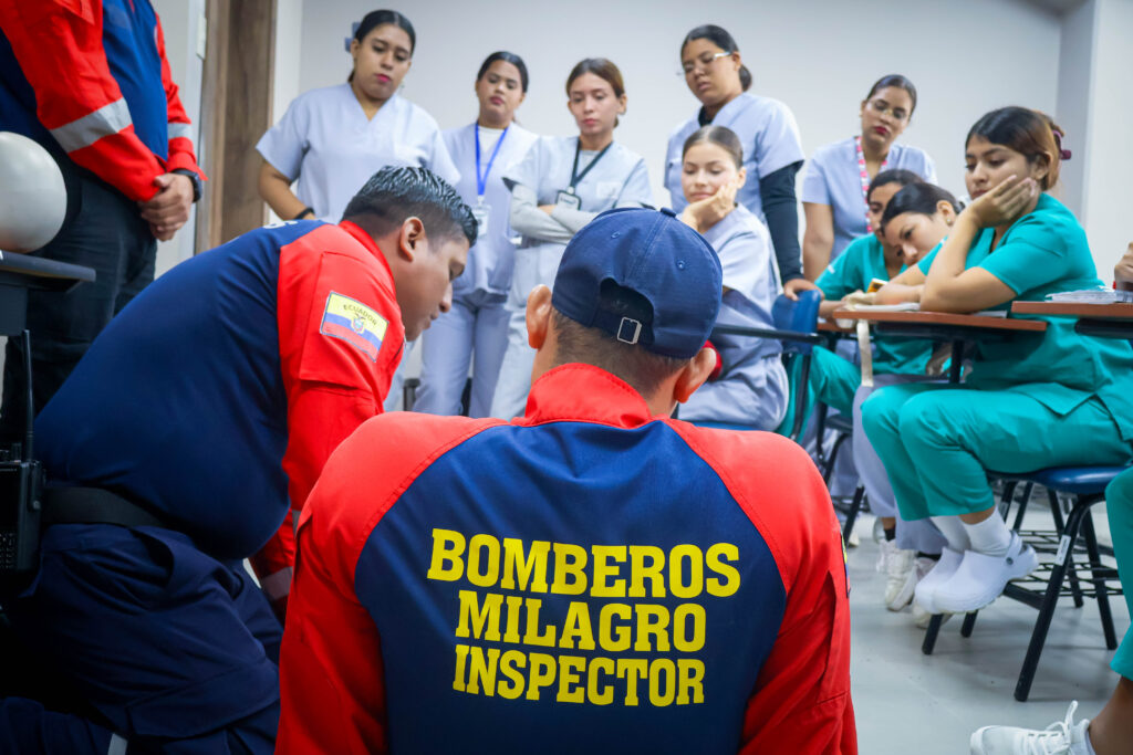 Brindamos una jornada de capacitación en Primeros Auxilios dirigida a los estudiantes del curso de Auxiliar de Enfermería de la Universidad Estatal de Milagro (UNEMI), con el objetivo de fortalecer conocimientos esenciales para la atención oportuna de emergencias.