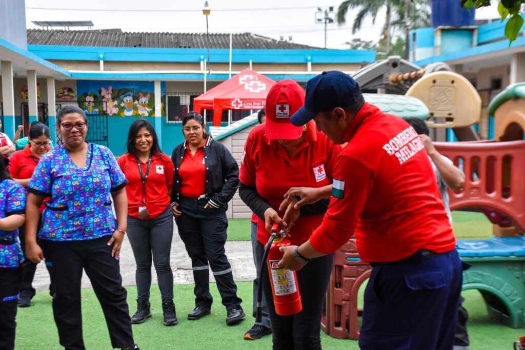 El área Instrucción y Capacitación de Bomberos Milagro compartió sus conocimientos con el personal de la Cruz Roja de Milagro, desarrollando una jornada formativa sobre el uso correcto de extintores y técnicas básicas para el control inicial de incendios.