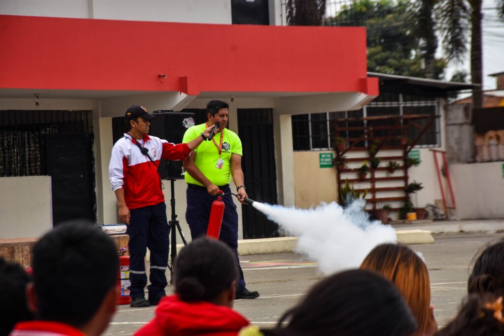 El Cuerpo de Bomberos de Milagro, a través de la dirección de Instrucción y Capacitación, impartió charlas educativas sobre el uso correcto de extintores a los estudiantes de la Unidad Educativa Abdón Calderón, fortaleciendo sus conocimientos y preparándolos para actuar con seguridad ante una emergencia.