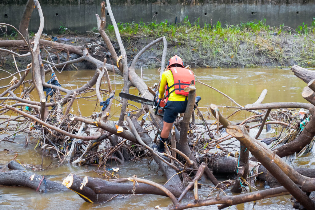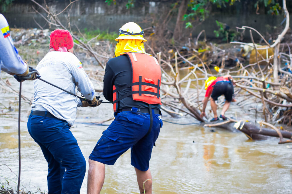 El personal operativo del Benemérito Cuerpo de Bomberos de Milagro ejecutó trabajos de intervención para el manejo y retiro de un árbol que había caído en el río Milagro, como consecuencia de las lluvias registradas durante la actual temporada invernal.