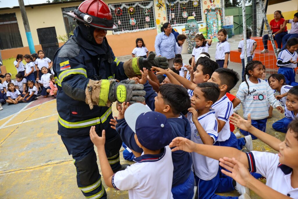 El Cuerpo de Bomberos de Milagro visitó la Escuela de Educación Básica Carlos Moreno Arias como parte de la campaña de prevención “Hazlo bien, por tu bien”, llevando mensajes claros y didácticos sobre la prevención de riesgos, el uso responsable de la pirotecnia y la forma correcta de actuar ante emergencias.