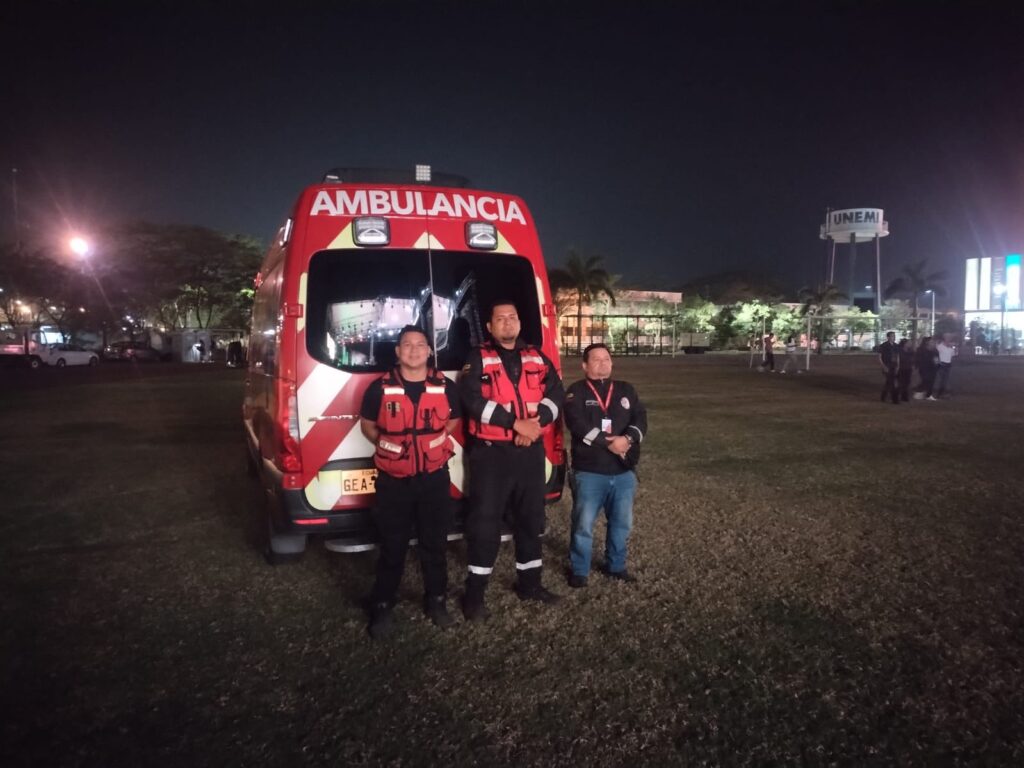 Durante el evento Reina de Milagro 2025, nuestro personal especializado en atención prehospitalaria se mantiene desplegado en el lugar, garantizando una respuesta inmediata ante cualquier emergencia médica.